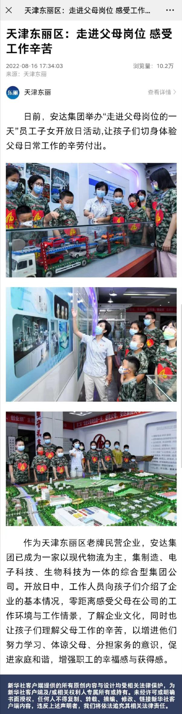 安达集团第二届“关心下一代成长”活动有幸获得新华社关注并在其官方APP进行宣传报道